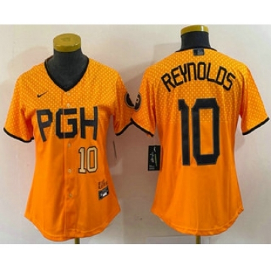 Women's Pittsburgh Pirates #10 Bryan Reynolds Yellowd 2023 City Connect Stitched Jersey