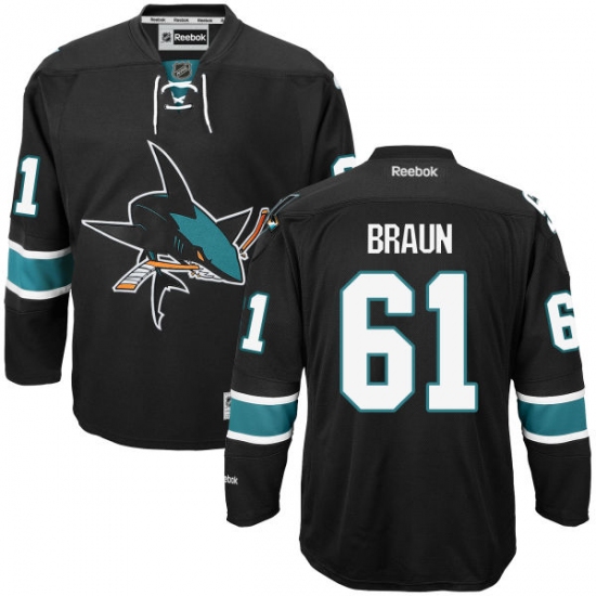 Home>NHL>San Jose Sharks>Justin Braun>Women's Reebok San Jose Sharks #61 Justin Braun Premier Black Third NHL Jersey