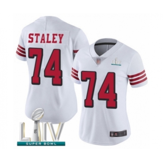 >Women's San Francisco 49ers #74 Joe Staley Limited White Rush Vapor Untouchable Super Bowl LIV Bound Football Jersey