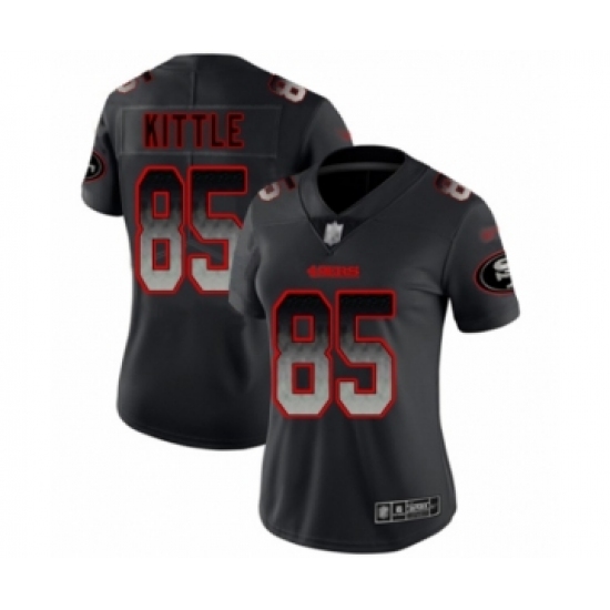>Women's San Francisco 49ers #85 George Kittle Limited Black Smoke Fashion Football Jersey