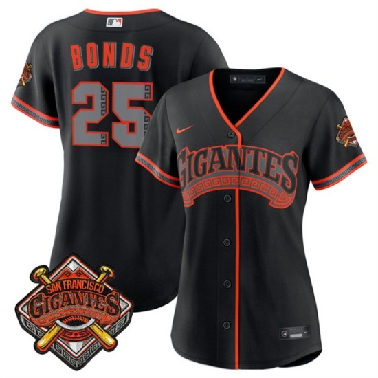 >Women's San Francisco Giants #25 Barry Bonds Black 2026 Alternate Stadium Stitched Baseball Jersey(Run Small)