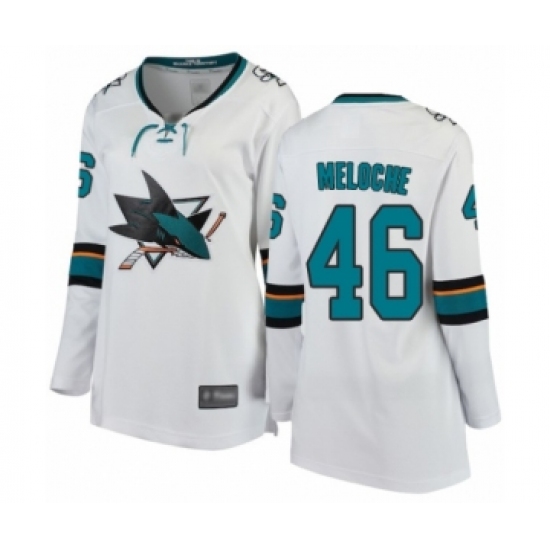 >Women's San Jose Sharks #46 Nicolas Meloche Fanatics Branded White Away Breakaway Hockey Jersey
