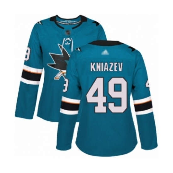 >Women's San Jose Sharks #49 Artemi Kniazev Authentic Teal Green Home Hockey Jersey