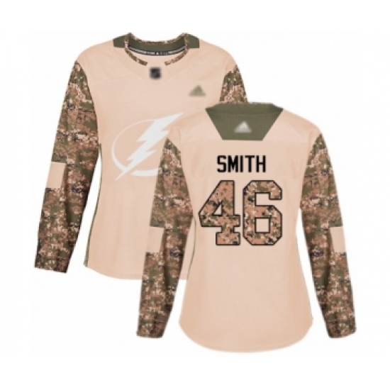 >Women's Tampa Bay Lightning #46 Gemel Smith Authentic Camo Veterans Day Practice Hockey Jersey
