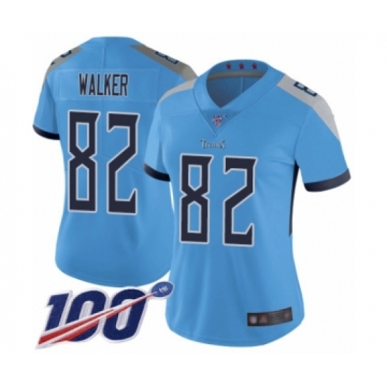 Women's Tennessee Titans #82 Delanie Walker Limited Light Blue Rush Vapor Untouchable 100th Season Football Jersey
