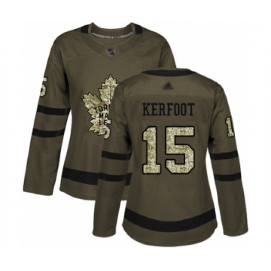 >Women's Toronto Maple Leafs #15 Alexander Kerfoot Authentic Green Salute to Service Hockey Jersey