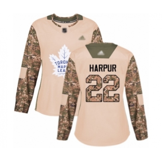 >Women's Toronto Maple Leafs #22 Ben Harpur Authentic Camo Veterans Day Practice Hockey Jersey