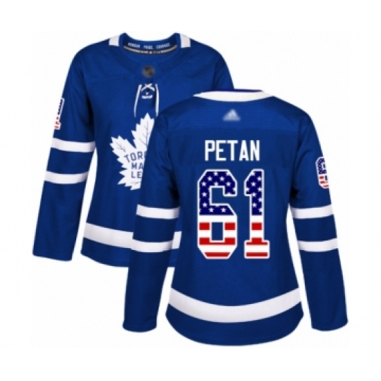 Women's Toronto Maple Leafs #61 Nic Petan Authentic Royal Blue USA Flag Fashion Hockey Jersey