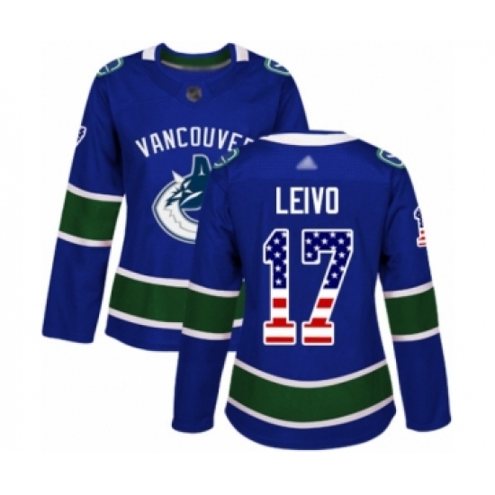 Women's Vancouver Canucks #17 Josh Leivo Authentic Blue USA Flag Fashion Hockey Jersey
