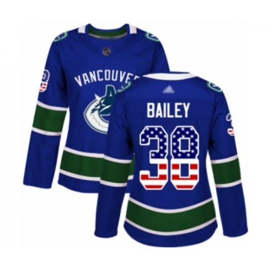 Women's Vancouver Canucks #38 Justin Bailey Authentic Blue USA Flag Fashion Hockey Jersey