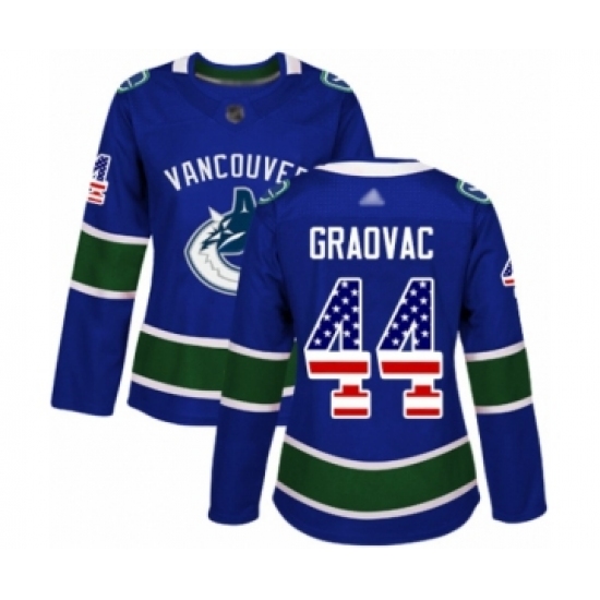 >Women's Vancouver Canucks #44 Tyler Graovac Authentic Blue USA Flag Fashion Hockey Jersey