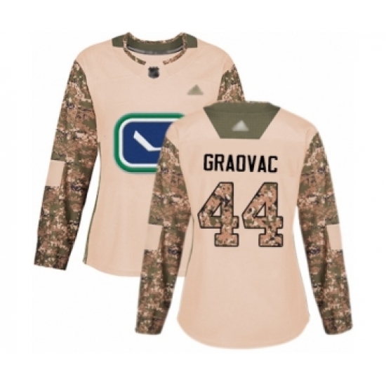 >Women's Vancouver Canucks #44 Tyler Graovac Authentic Camo Veterans Day Practice Hockey Jersey