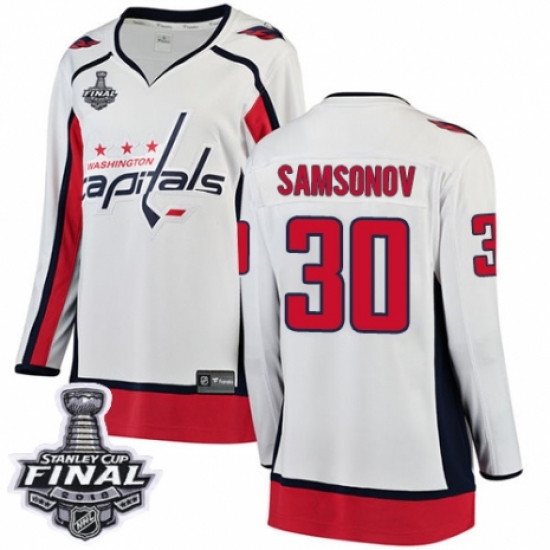 Women's Washington Capitals #30 Ilya Samsonov Fanatics Branded White Away Breakaway 2018 Stanley Cup Final NHL Jersey