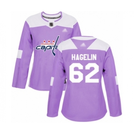 >Women's Washington Capitals #62 Carl Hagelin Authentic Purple Fights Cancer Practice Hockey Jersey