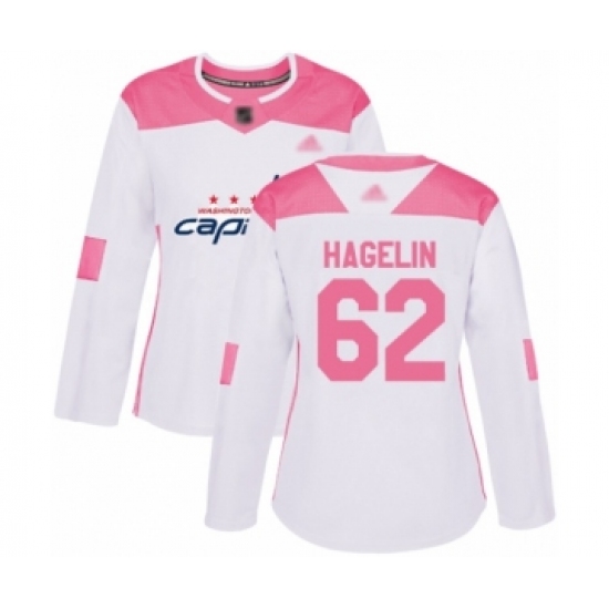 >Women's Washington Capitals #62 Carl Hagelin Authentic White Pink Fashion Hockey Jersey