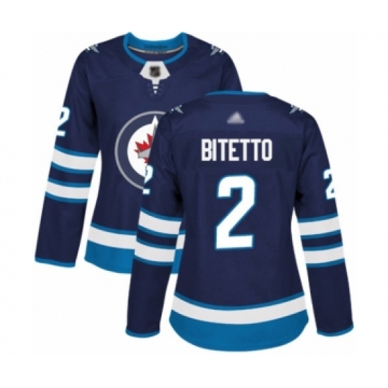 >Women's Winnipeg Jets #2 Anthony Bitetto Authentic Navy Blue Home Hockey Jersey