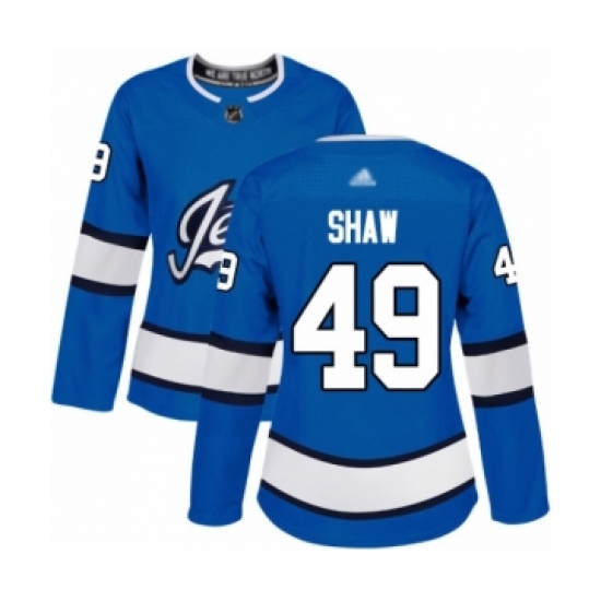>Women's Winnipeg Jets #49 Logan Shaw Authentic Blue Alternate Hockey Jersey