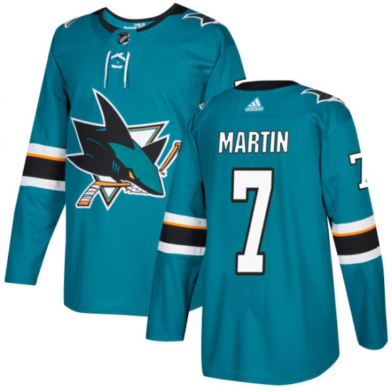 Home>NHL>San Jose Sharks>Paul Martin>Youth Adidas San Jose Sharks #7 Paul Martin Authentic Teal Green Home NHL Jersey