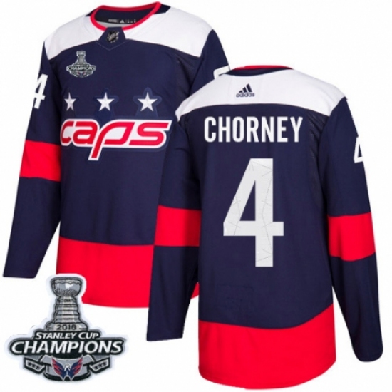 >Youth Adidas Washington Capitals #4 Taylor Chorney Authentic Navy Blue 2018 Stadium Series 2018 Stanley Cup Final Champions NHL Jersey