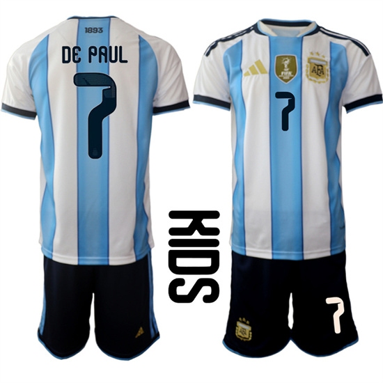 Youth Argentina #7 DE PAUL National Team FIFA x World Cup 2026 Home White On Field Kids Jersey