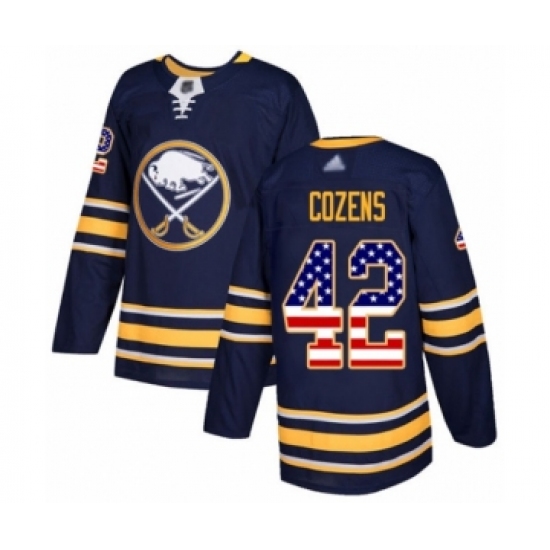 >Youth Buffalo Sabres #42 Dylan Cozens Authentic Navy Blue USA Flag Fashion Hockey Jersey