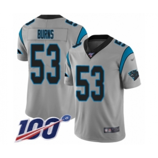 >Youth Carolina Panthers #53 Brian Burns Silver Inverted Legend Limited 100th Season Football Jersey