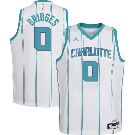 Youth Charlotte Hornets #0 Miles Bridges Jordan Brand White 2020-21 Swingman Jersey