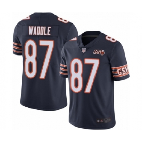 Men's Chicago Bears #87 Tom Waddle Navy Blue Team Color 100th Season Limited Football Jersey