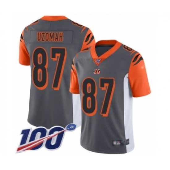 >Youth Cincinnati Bengals #87 C.J. Uzomah Limited Silver Inverted Legend 100th Season Football Jersey
