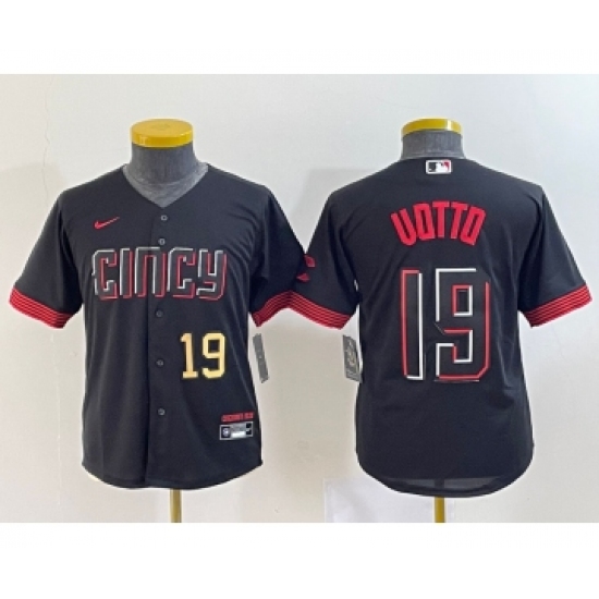 Youth Cincinnati Reds #19 Joey Votto Number Black 2023 City Connect Cool Base Stitched Jersey2