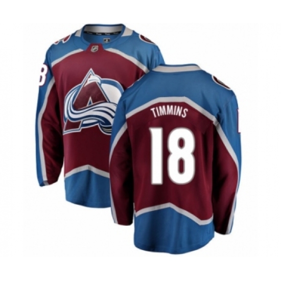 >Youth Colorado Avalanche #18 Conor Timmins Authentic Maroon Home Fanatics Branded Breakaway NHL Jersey