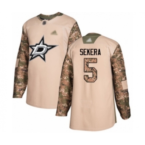 >Youth Dallas Stars #5 Andrej Sekera Authentic Camo Veterans Day Practice Hockey Jersey