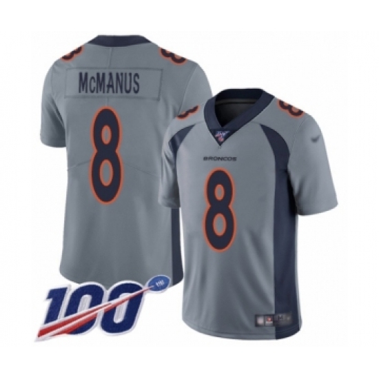 >Youth Denver Broncos #8 Brandon McManus Limited Silver Inverted Legend 100th Season Football Jersey