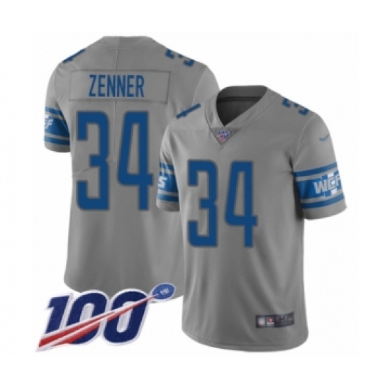 >Youth Detroit Lions #34 Zach Zenner Limited Gray Inverted Legend 100th Season Football Jersey