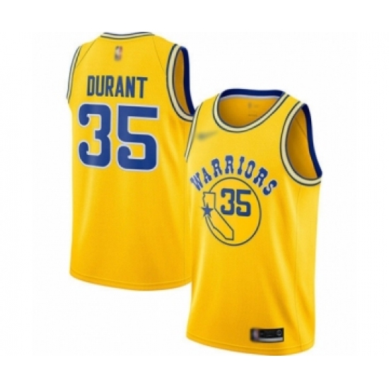 >Youth Golden State Warriors #35 Kevin Durant Swingman Gold Hardwood Classics Basketball Jersey