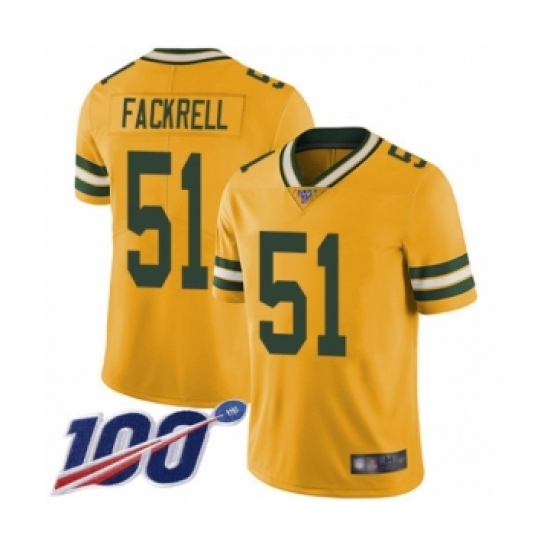 >Youth Green Bay Packers #51 Kyler Fackrell Limited Gold Rush Vapor Untouchable 100th Season Football Jersey