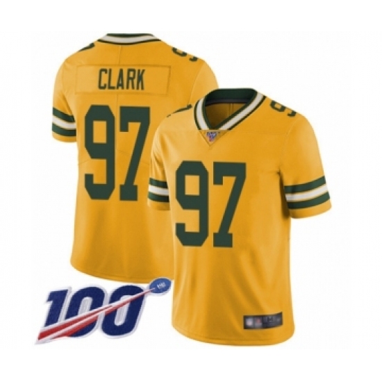 >Youth Green Bay Packers #97 Kenny Clark Limited Gold Rush Vapor Untouchable 100th Season Football Jersey