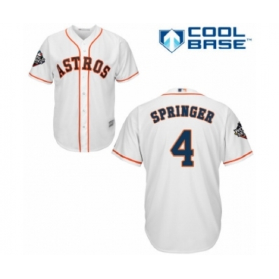 Youth Houston Astros #4 George Springer Authentic White Home Cool Base 2019 World Series Bound Baseball Jersey