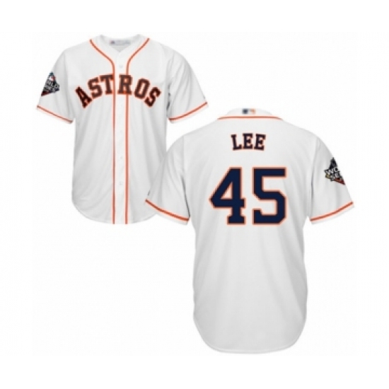 Youth Houston Astros #45 Carlos Lee Authentic White Home Cool Base 2019 World Series Bound Baseball Jersey