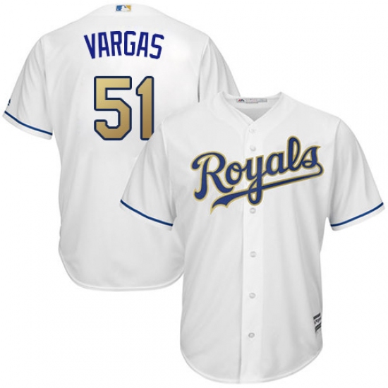 Home>MLB>Kansas City Royals>Jason Vargas>Youth Majestic Kansas City Royals #51 Jason Vargas Authentic White Home Cool Base MLB Jersey