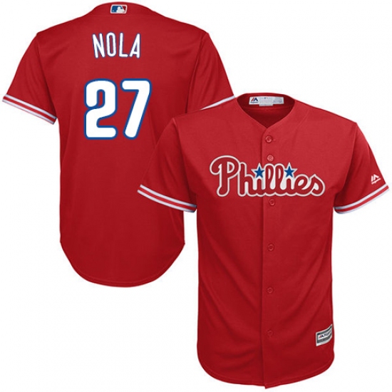 Home>MLB>Philadelphia Phillies>Aaron Nola>Youth Majestic Philadelphia Phillies #27 Aaron Nola Authentic Red Alternate Cool Base MLB Jersey