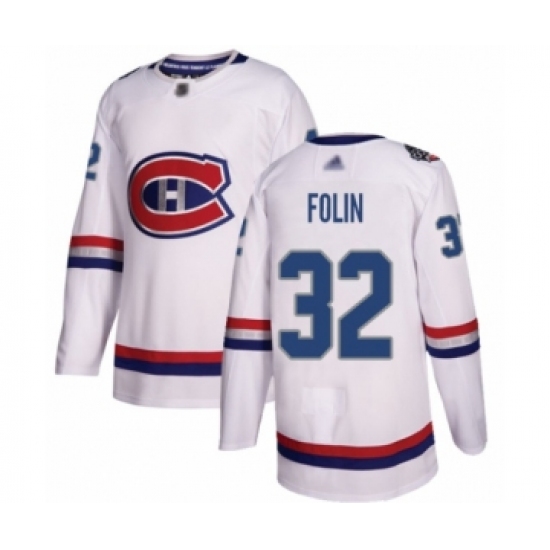 Women's Montreal Canadiens #32 Christian Folin Authentic White 2017 100 Classic Hockey Jersey