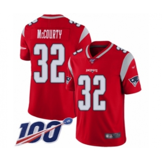 >Youth New England Patriots #32 Devin McCourty Limited Red Inverted Legend 100th Season Football Jersey