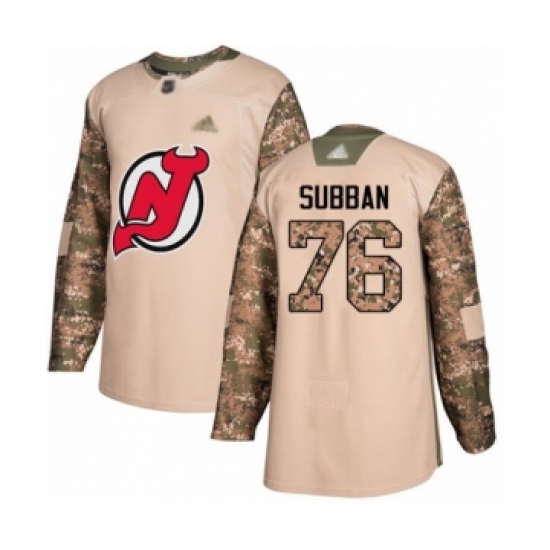 Men's New Jersey Devils #76 P. K. Subban Authentic Camo Veterans Day Practice Hockey Jersey
