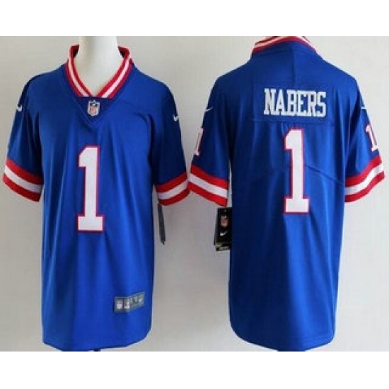 >Youth New York Giants #1 Malik Nabers Limited Blue Classic Vapor Jersey