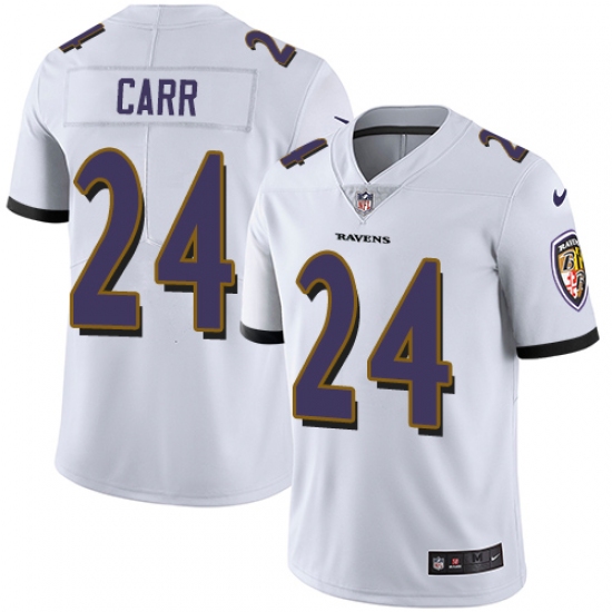Home>NFL>Baltimore Ravens>Brandon Carr>Youth Nike Baltimore Ravens #24 Brandon Carr White Vapor Untouchable Limited Player NFL Jersey