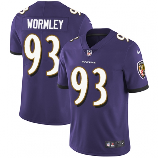 Home>NFL>Baltimore Ravens>Chris Wormley>Youth Nike Baltimore Ravens #93 Chris Wormley Purple Team Color Vapor Untouchable Limited Player NFL Jersey