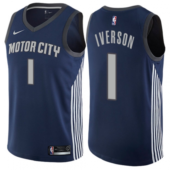 Home>NBA>Detroit Pistons>Allen Iverson>Youth Nike Detroit Pistons #1 Allen Iverson Swingman Navy Blue NBA Jersey - City Edition