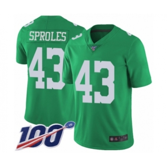 >Youth Philadelphia Eagles #43 Darren Sproles Limited Green Rush Vapor Untouchable 100th Season Football Jersey