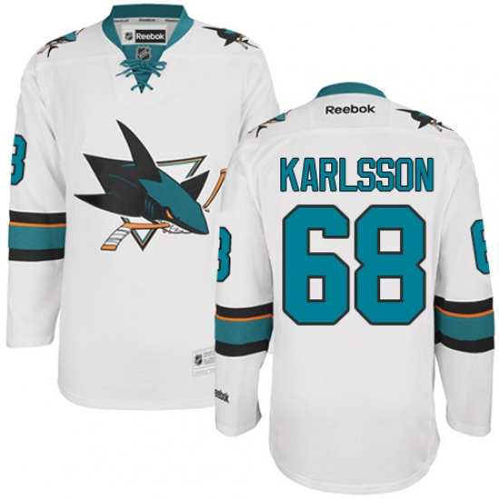 Home>NHL>San Jose Sharks>Melker Karlsson>Youth Reebok San Jose Sharks #68 Melker Karlsson Authentic White Away NHL Jersey